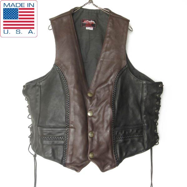 - USA製 Hillside USA レザー ベスト size 54 黒×ダークブラウン系 バイカー ビッグサイズ 大きいサイズ アメリカ製 D152-05-0011ZT