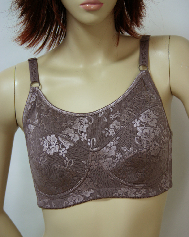 > 送料無料◆脇高パターン◆背中&バストすっきり◆柄編み◆花柄◆快適な付け心地◆ノンワイヤー◆フルカップブラジャー(C/75/グレー)261