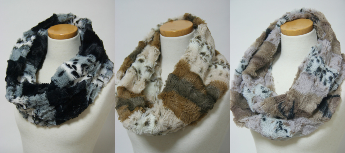> 送料無料◆超お得◆豪華3色組◆フェイクファー◆二重巻き◆グラデーション◆ヒョウ柄ロングスヌード(グレー&ブラウン&ラベンダー)3437