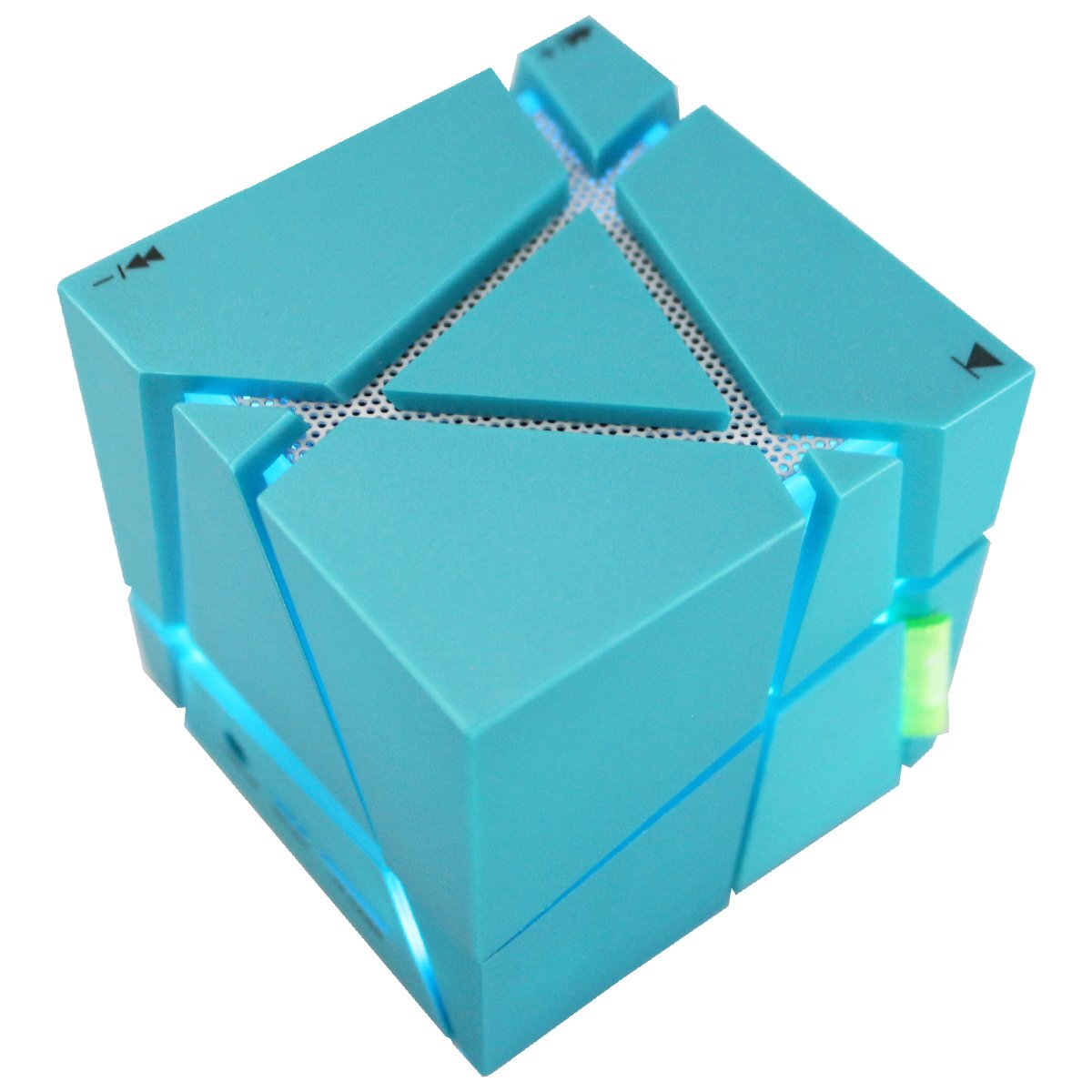 - 重低音 LEDライト搭載 Bluetooth スピーカー 水色 ワイヤレス 再生機 スクエア型 四角 サイコロ 小型 イルミネーション ウーファー