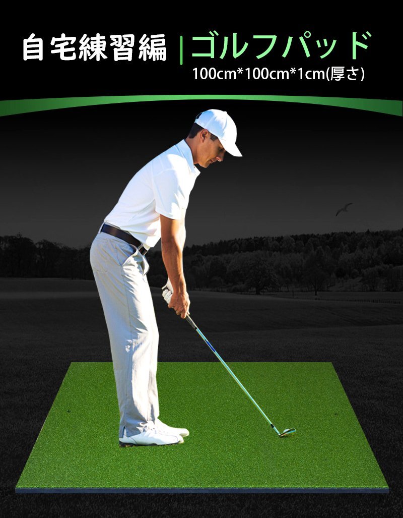 - ゴルフパッド ゴルフマット 室内外 100cm×100cm×1cm 人工芝 ティー付き ゴルフ 練習 マット 素振り スイング 練習用 ゴルフ練習 hw040