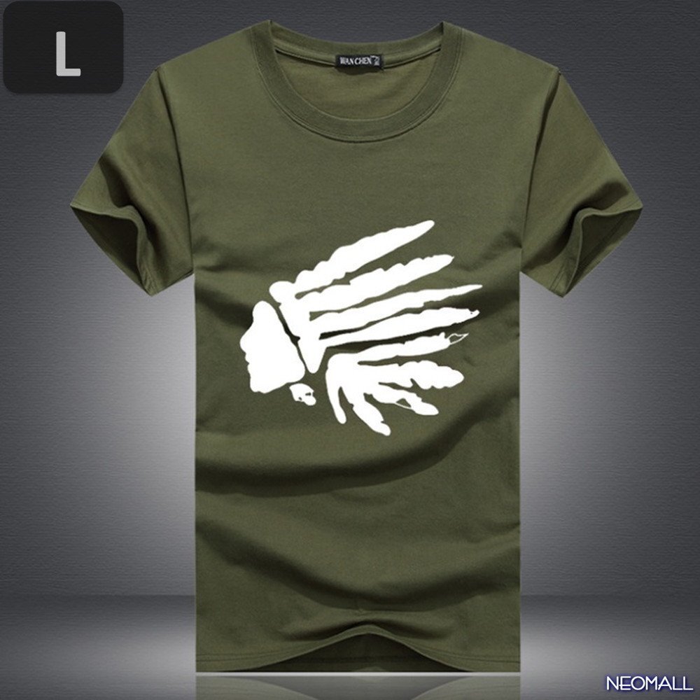 - 夏の定番 ☆ 丸首 半袖 Tシャツ【462】 グリーン Lサイズ トップス シャツ シンプル イラスト デザイン 春夏