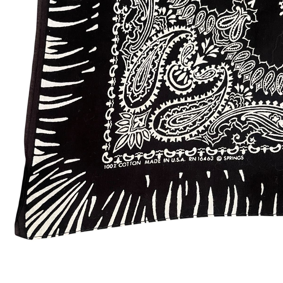 - ビンテージ バンダナ USA製 springs 黒 ゼブラ 片耳 vintage ブラック ペイズリー柄 bandana
