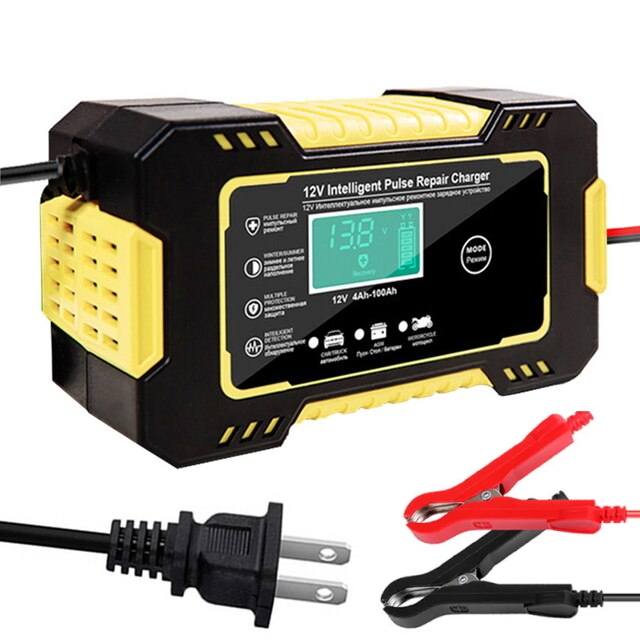 - 急速バッテリー充電器 12V車コンパクト充電器イエロー 大型車から軽自動車やバイクや重機まで対応 高性能で簡単操作でバッテリーを急速充電