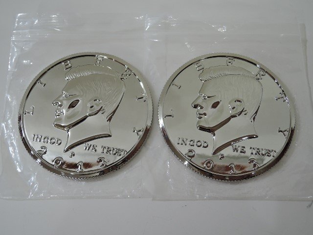 マジック用コイン ケネディ ハーフダラー ジャンボコイン 2013 メッキ 2枚セット/中古品