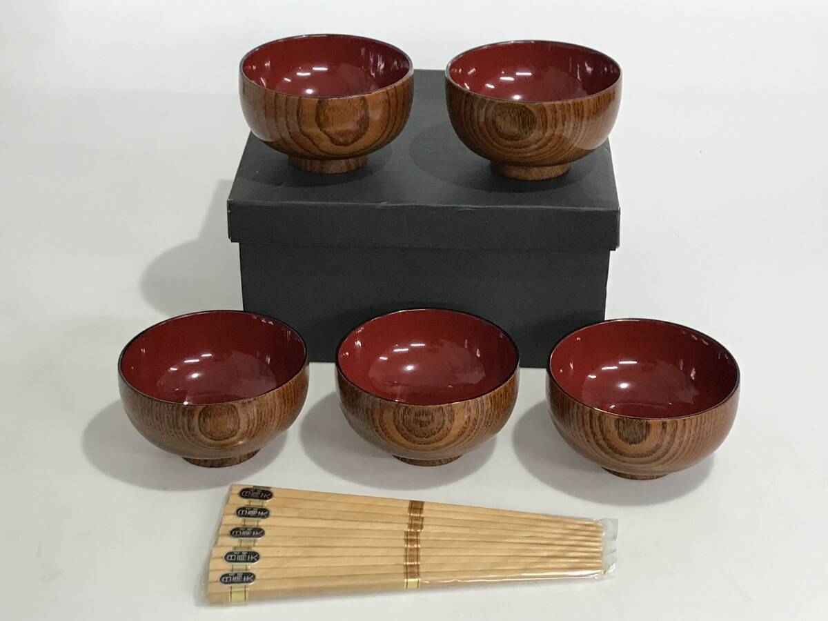 - HG8999 大和汁椀揃 5客 南天箸付き 伝統工芸品 漆 木製漆器 和食器