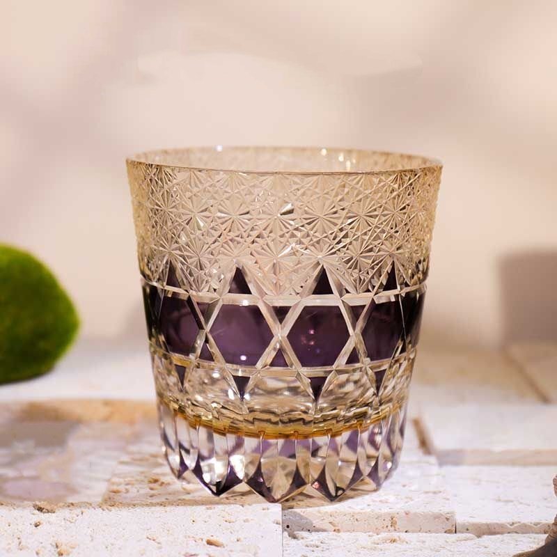 - 訳あり 在庫処分 お買い得 ロックグラス クリスタルガラス 切子 ウィスキー用 ドリング用 箱なし 簡易包装 自宅用 1点のみ ZH1859