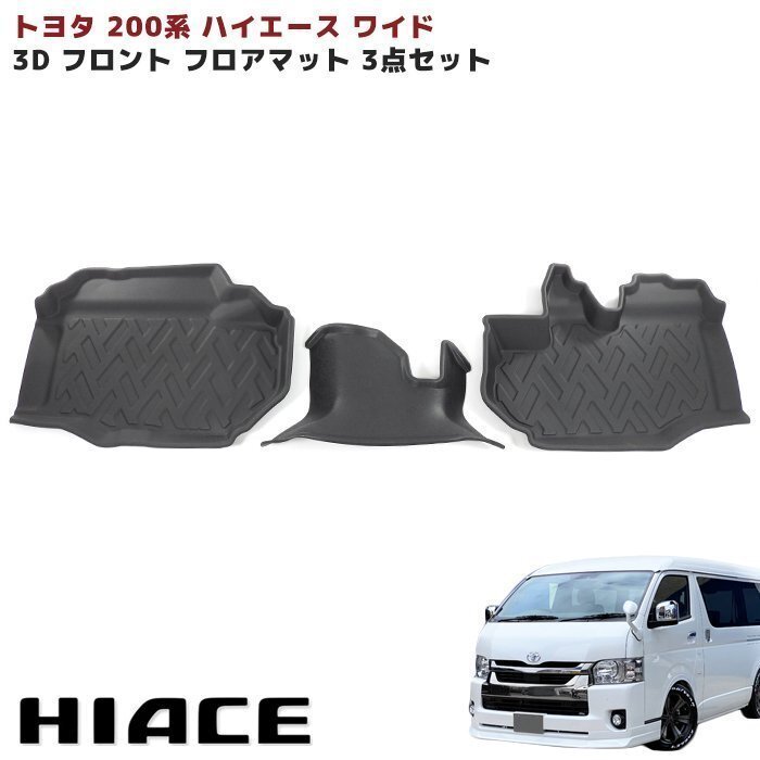 - 200系 ハイエース ワイド 3D フロアマット 前部座席 フロント 3点セット 防水 防汚 TPO素材 ゴム ラバー ブラック 3P 新品 トヨタ