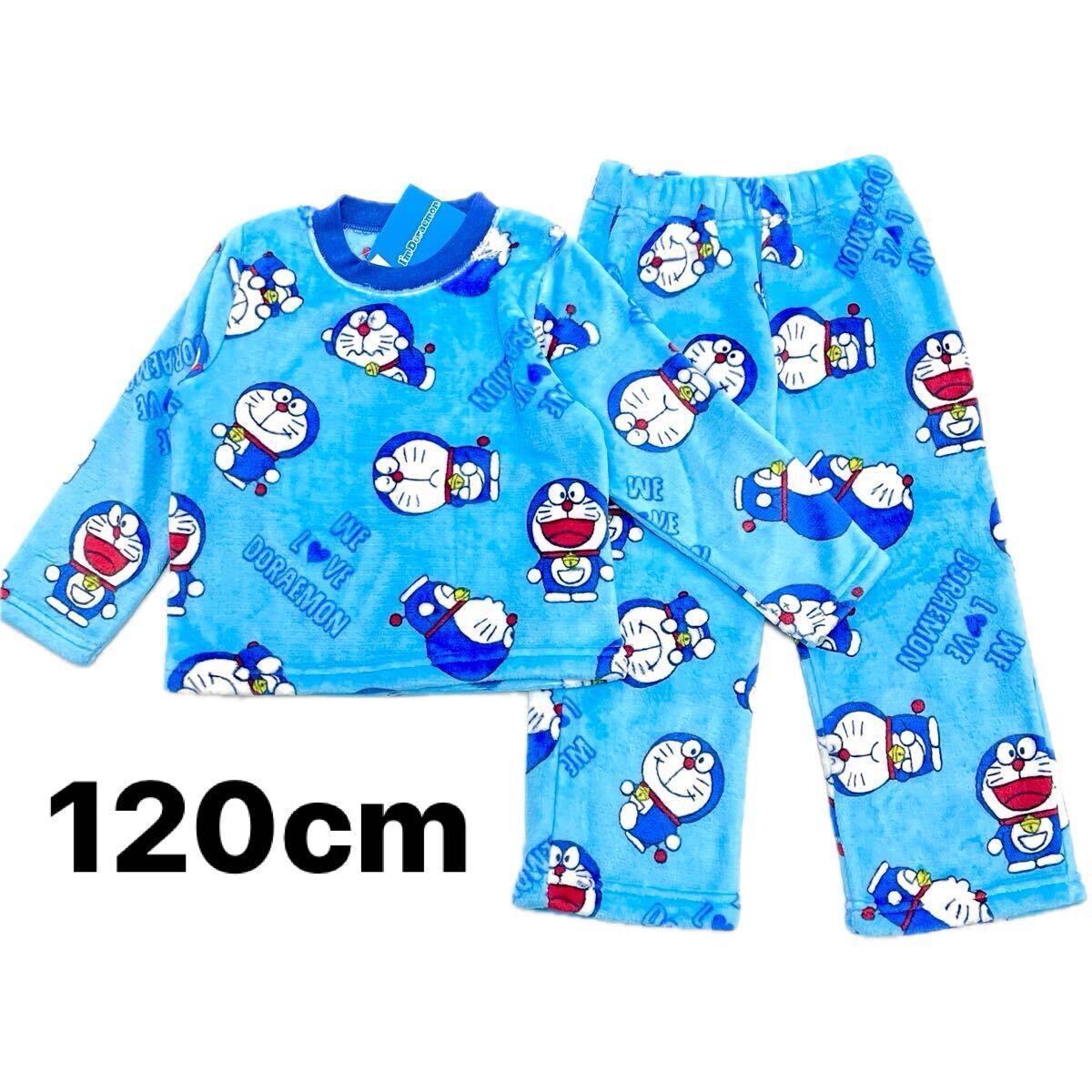 - 新品64666 120cm ブルー ドラえもん キッズ ミンクフリース丸首長袖パジャマボーイズ ルームウェアあったか素材