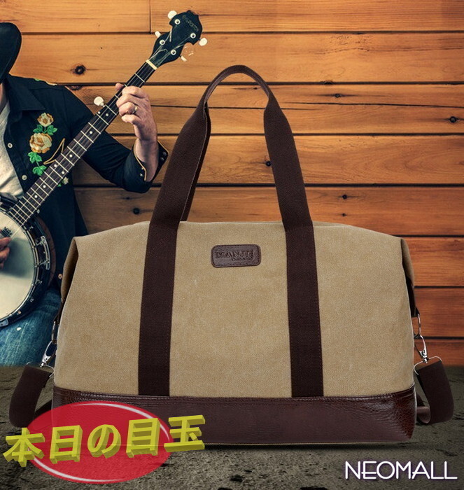 - シンプルデザイン 2way バッグ 【879】 ライトブラウン ☆ キャンバス フライトバッグ ボストンバッグ ハンドバッグ 小旅行 通学 出張