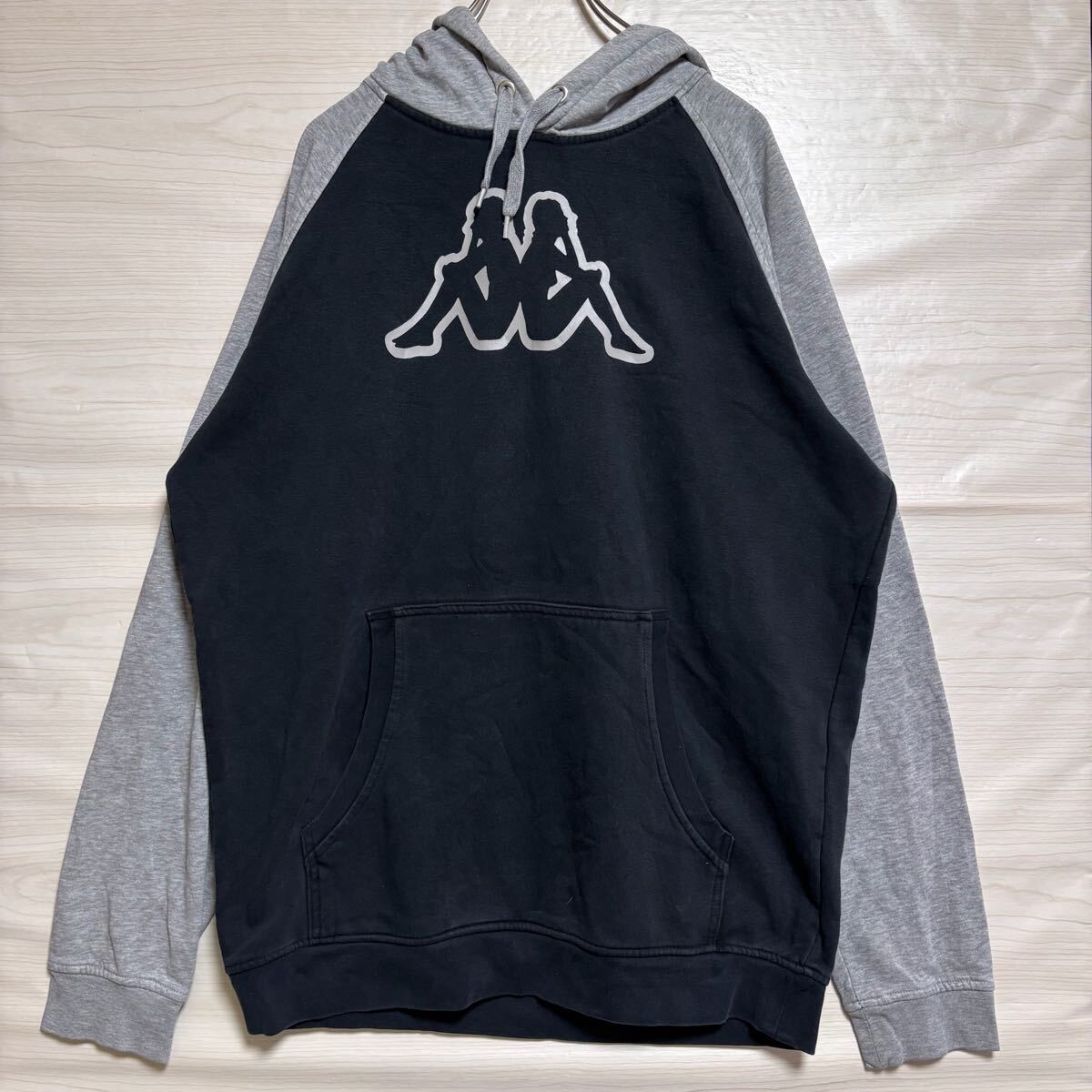 - KAPPA カッパ プルオーバーパーカー フーディー スウェット ビックロゴプリント サイズXXL ブラック 黒 コットン メンズ トップス(47)
