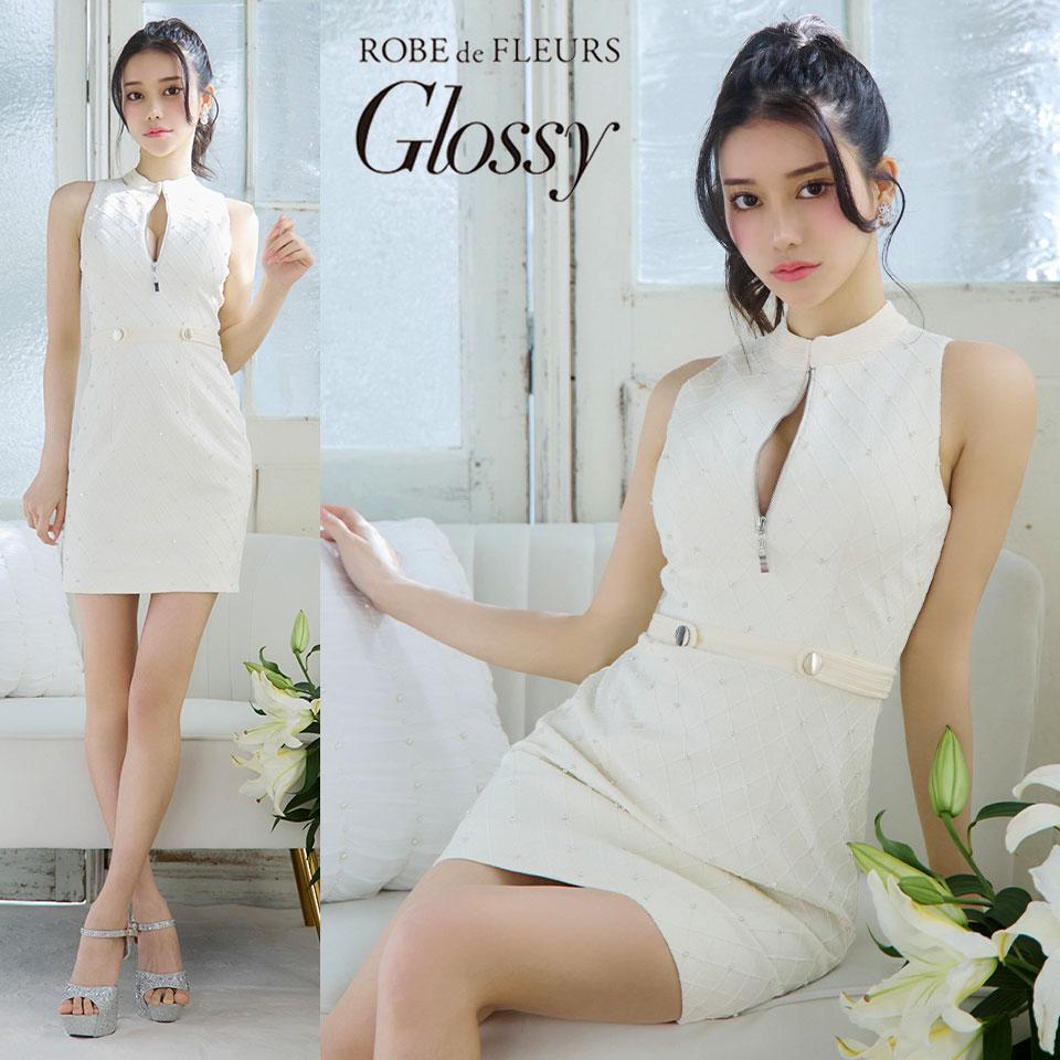 - ROBE de FLEURS Glossy ローブドフルールグロッシー フロントジッパー×ビジューリブノースリーブミニキャバドレス GL3554