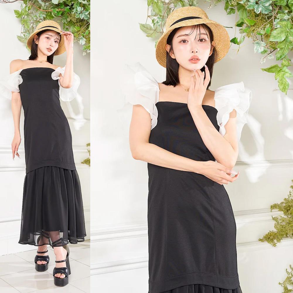 - Darich ダーリッチ ラッフルスリーブフレアワンピース ブラック