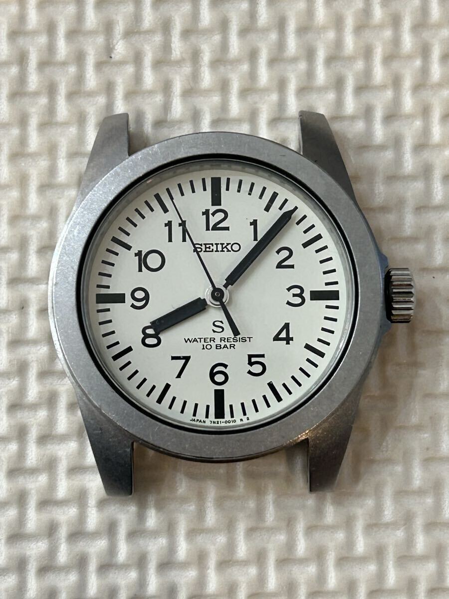 > 1円〜 SEIKO セイコー フェイスのみ SUS サス 7N21-0010 アイボリー文字盤 メンズ腕時計 シルバー クォーツ 電池切れ