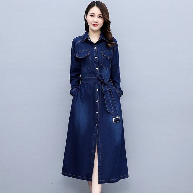 - カバーオール ワンピース レディース オールインワン アウター ライトジャケット デニム ロング丈 長袖 Aライン 着痩せ Mサイズ