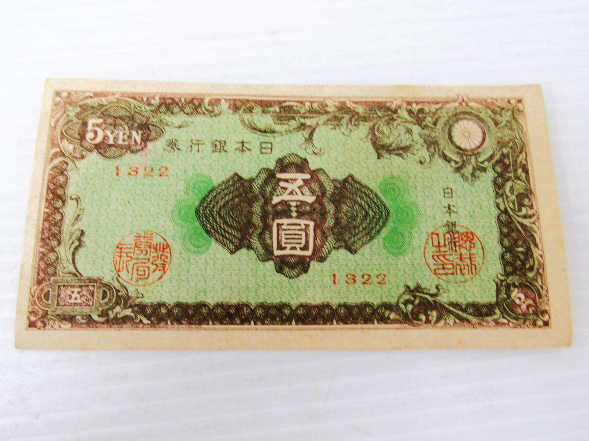 - 日本銀行券 五圓 旧紙幣 古紙幣 古銭 5円札 五円札 通貨 日本 昭和 アンティーク コレクション ヴィンテージ HG1121