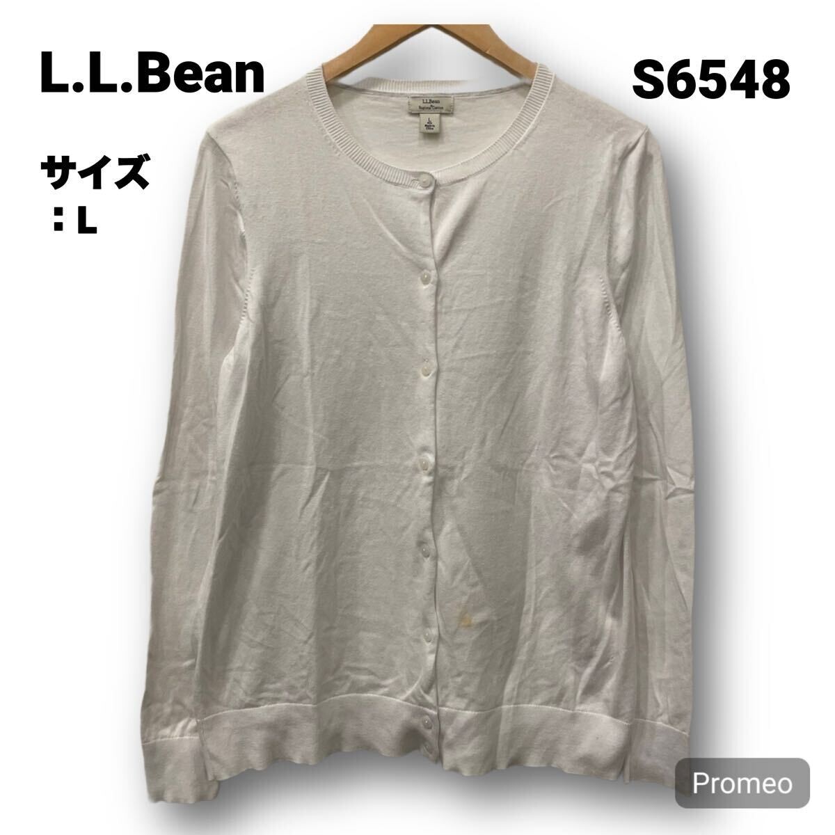 - 【S6548】 L.L.Bean エルエルビーン スーピマコットンカーディガン サイズL ホワイト 白 無地 レディース トップス 最落なし 古着