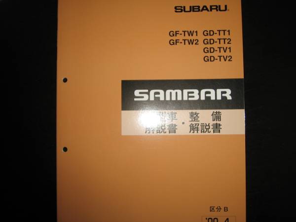 - .絶版品★TW1 TW2 TT1 TT2 TV1 TV2 サンバー新型車解説書・整備解説書(区分B)2000年4月(白色表紙)