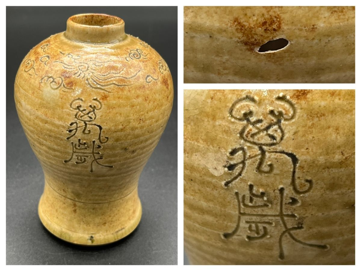 - 黄瀬戸 春二 萬歳 徳利 直径7.8×高12.5㎝ 237g 骨董品 古美術 時代物 陶器 酒注 酒器 陶器製徳利 (20321)