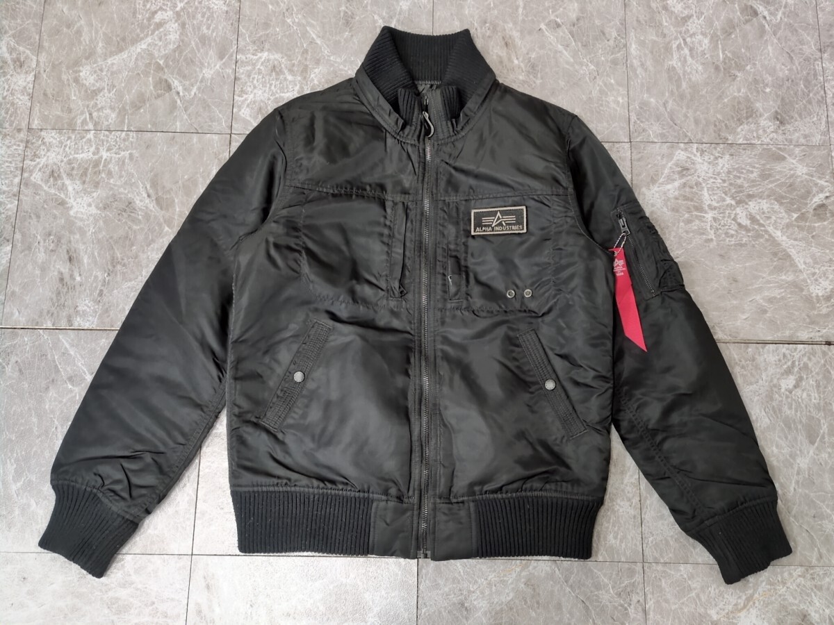 - 5.ALPHA リボン ナイロン パファー ミリタリー ジャケット ブルゾン ジャンパー アルファ 中綿 パディング TA1260-8101 メンズXL 黒 y105
