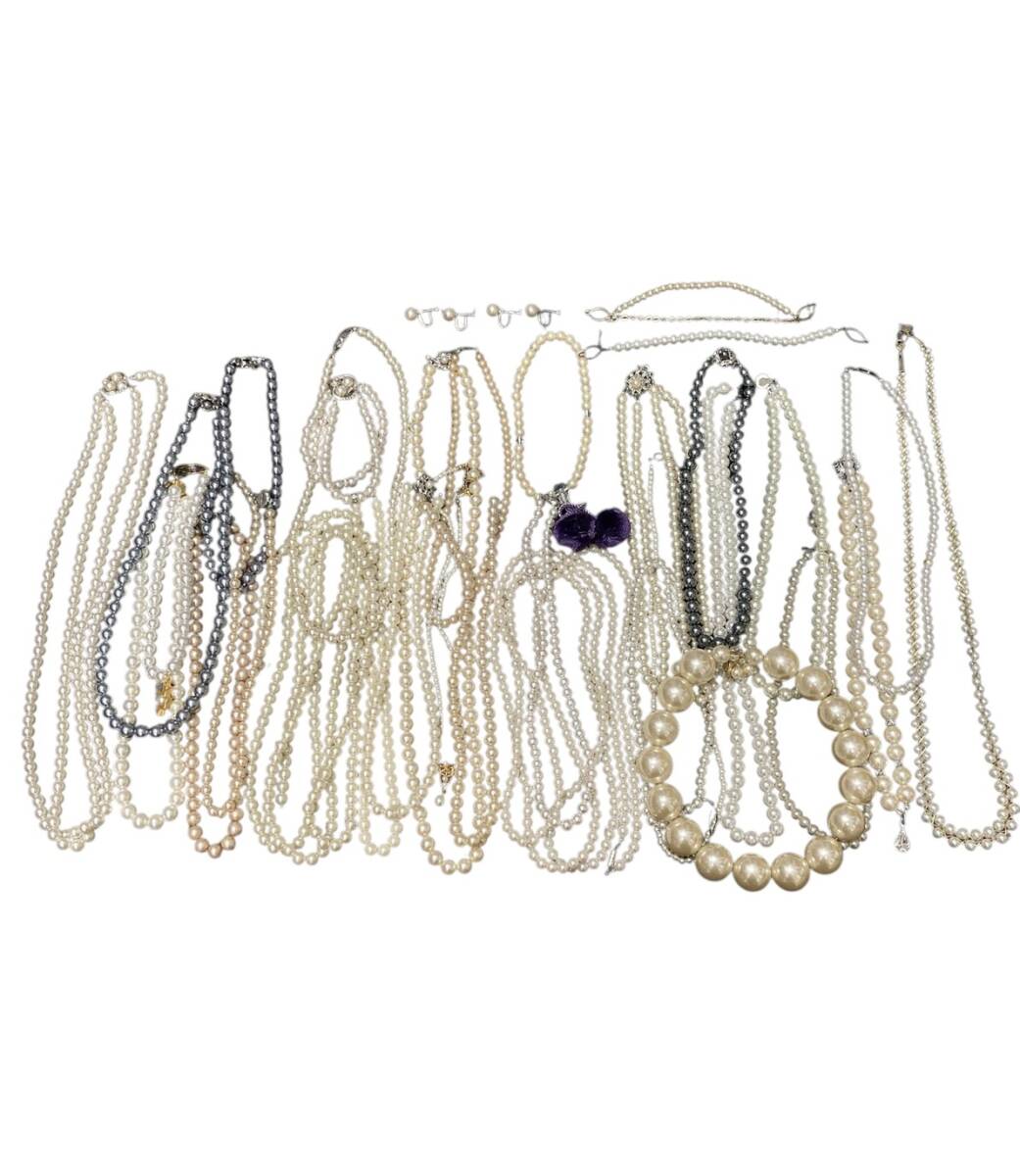 > (M) パールアクセサリーまとめ 総重量約900g ネックレス ブレスレット イヤリング シルバー刻印 イミテーション 1円~
