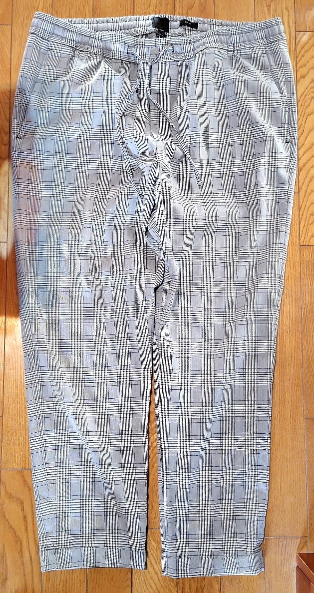 > XL ウエスト約100cm H&M エイチアンドエム グレー チェック柄 パンツ 古着 USED グレー パンツ 薄手