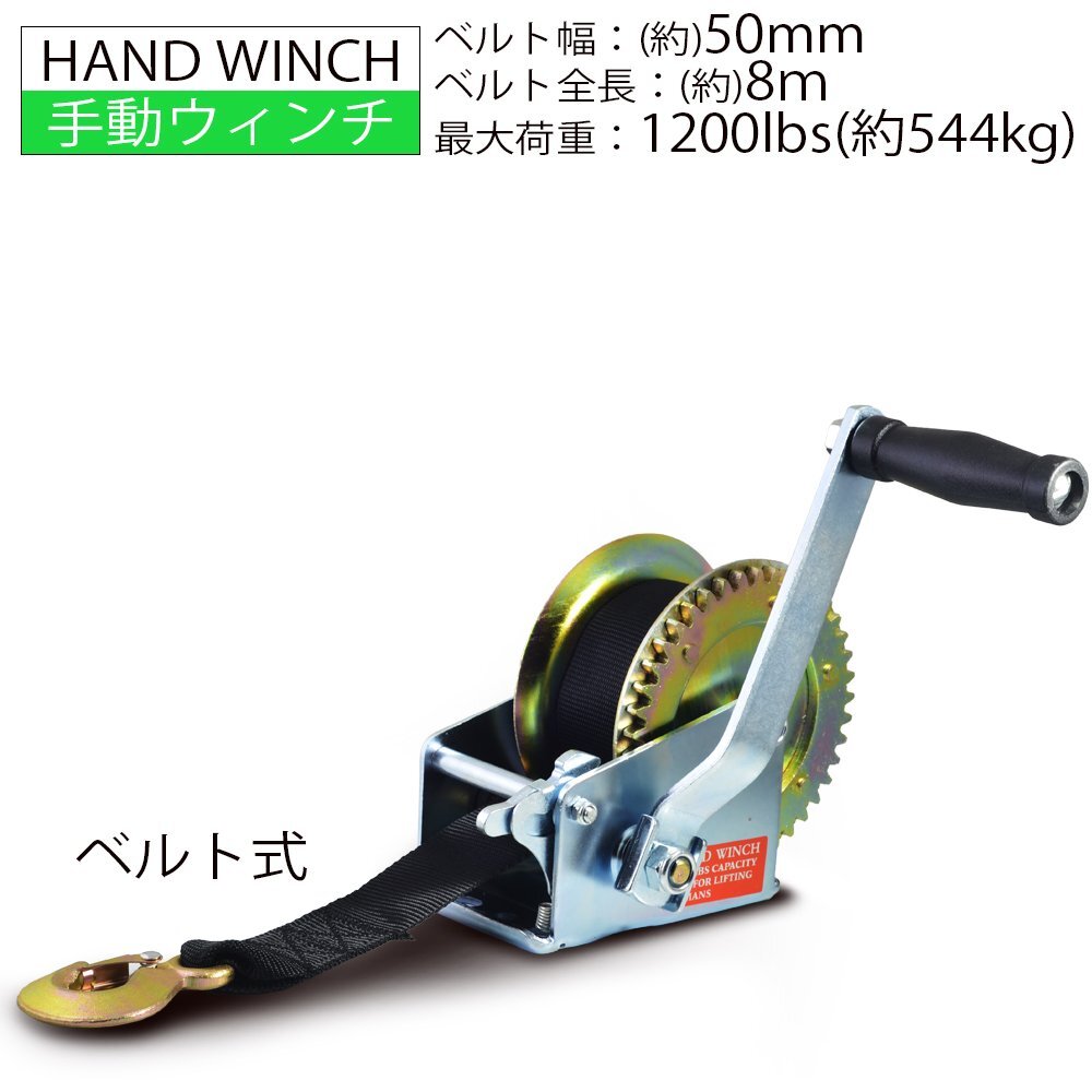 > ハンドウインチ 手動ウィンチ ベルトタイプ 手巻き 1200LBS 544kg 手巻き バイク 水上スキー ジェットスキー 荷締 作業 ウィンチ