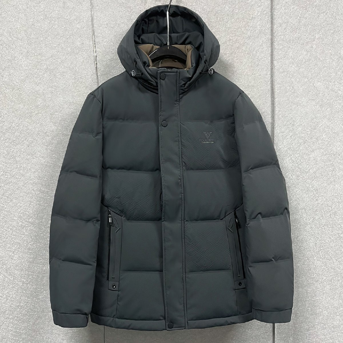 > ダウンジャケット イタリア製造 ダックダウン90% 防寒対策 保温 軽量 ソフト シンプル フード付き アウター ビジネス 通勤 通学 SIZE:2XL