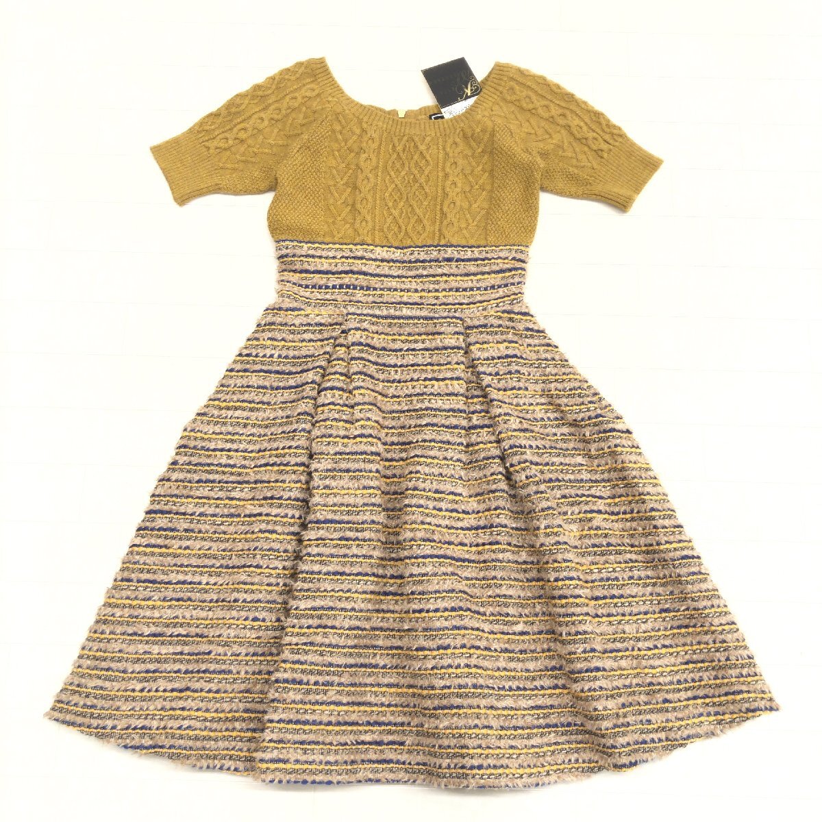 > ●新品 KEITA MARUYAMA ケイタマルヤマ 定価80,000円+税 異素材切替 ウール ニット タック ドレス ワンピース 2 日本製 半袖 女性用 未使用