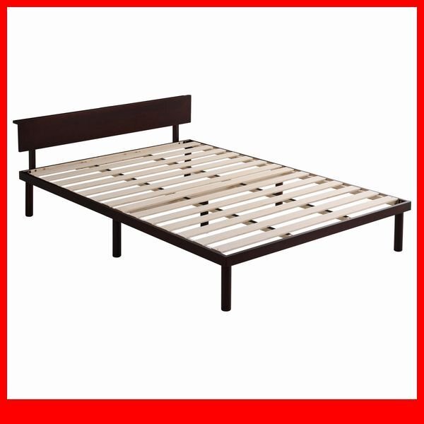 > ベッド★新品/宮付き パイン材高さ2段階調整脚付きすのこベッド ダブル/通気性 耐久性 頑丈 低ホルムアルデヒド/ブラウン/a1