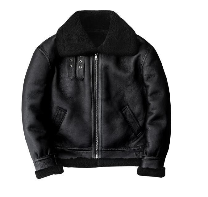 - 新品高品質秋冬 暖かい 本革ジャケットB3フライトジャケット メンズ ムートン ウール 革ジャン 本革コート 黒お色選択可