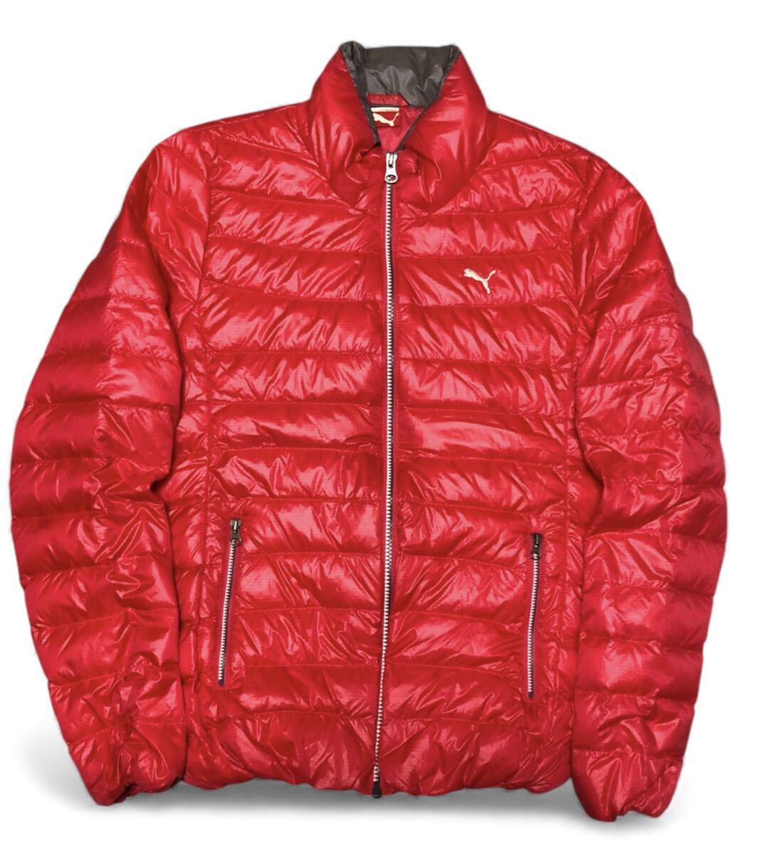 - ■PUMA プーマ■ロゴ刺繍 フルジップ ナイロン ダウンジャケット レッド L