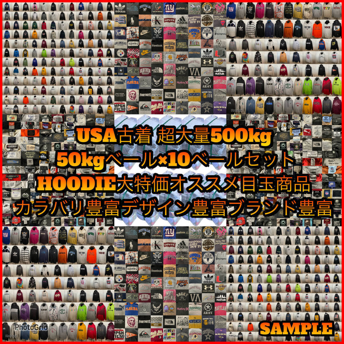 - 【T1804】★10ベールセット★ アメリカ古着オススメHOODIE超大量500kg パーカー ブランド豊富 カラバリ豊富 デザイン豊富サイズMIX