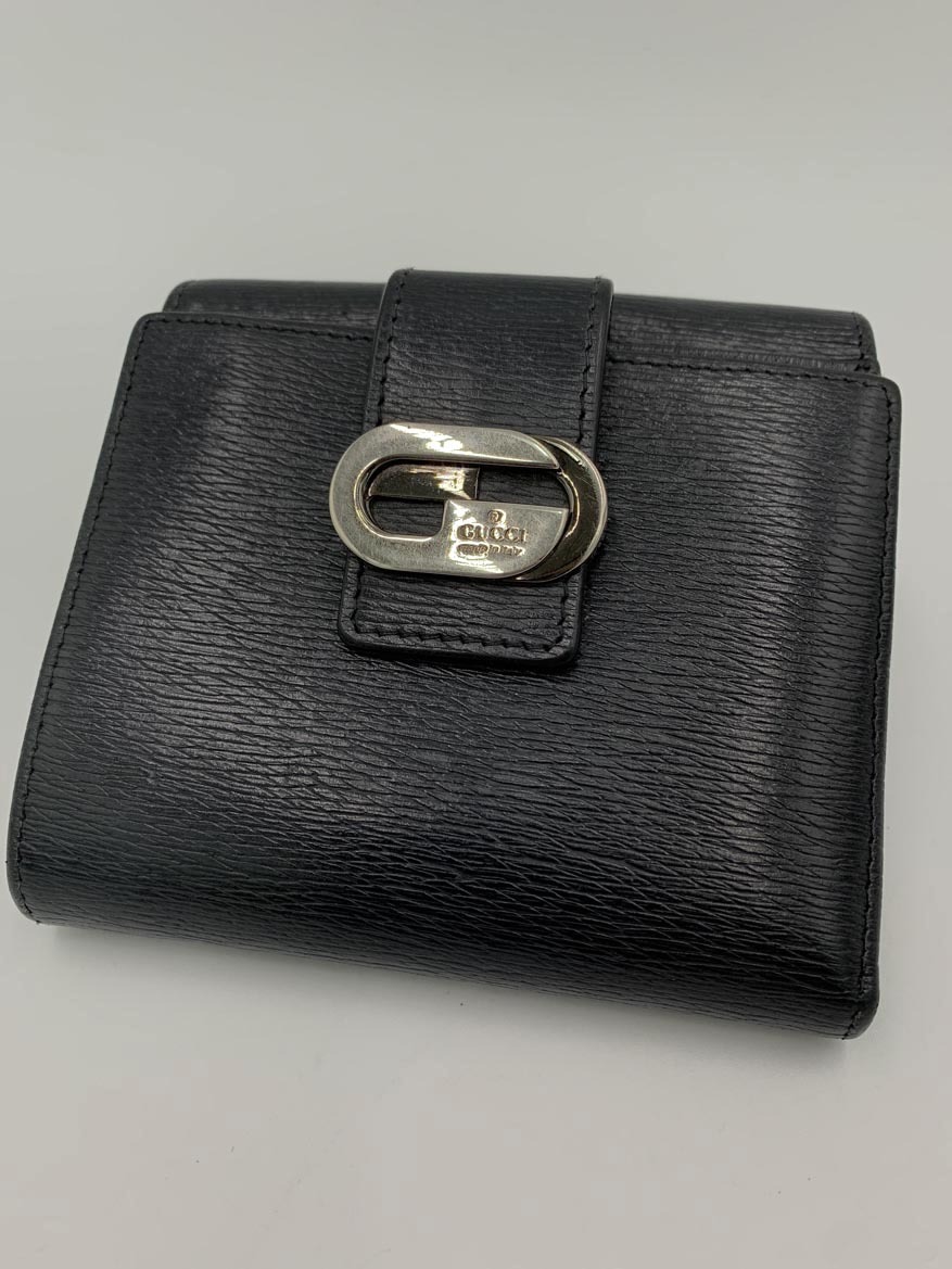 - GUCCI グッチ 035 2888 2111 Wホック インターロッキング レザー 二つ折り 財布 黒 ■■◎ ☆ fkc1 メンズ