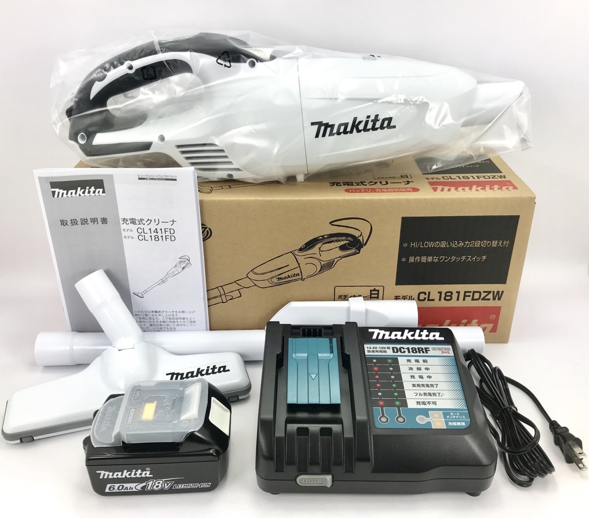 - 新品 マキタ 充電式クリーナ CL181FDZW 本体 + バッテリ BL1860B + 充電器 DC18RF ( 18V 6.0Ah カプセル式 未使用 充電式クリーナー