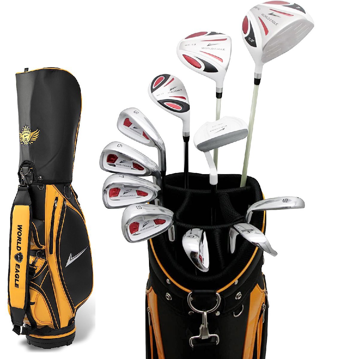 - 5Zホワイト メンズゴルフクラブセット CBX007 サンオレンジカラーカートバッグ付 右利き用 フレックスR[33790]