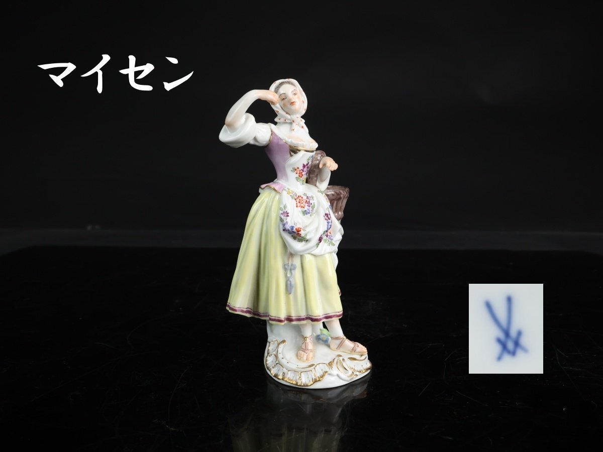 【志】A1398 マイセン MEISSEN 色絵 磁器人形 フィギュリン 婦人 西洋美術 【=