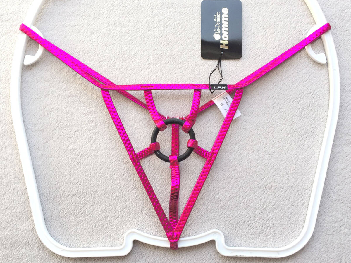- 【ラ・ポームオム/La-Pomme Homme】完全露出!ギンギン★ブラックシリコンリング&メタリック★浅履きTバック/ピンク♪新品/日本製