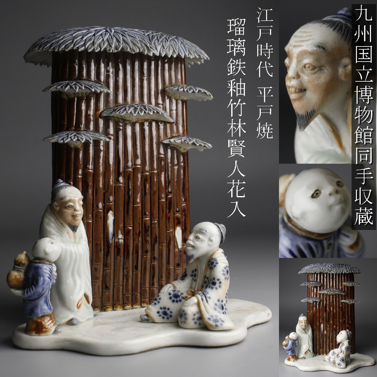 > 【LIG】九州国立博物館同手収蔵 19世紀 江戸時代 平戸焼 瑠璃鉄釉 竹林賢人花入 22.5㎝ 花瓶 花器 古美術品 [.II]25.11