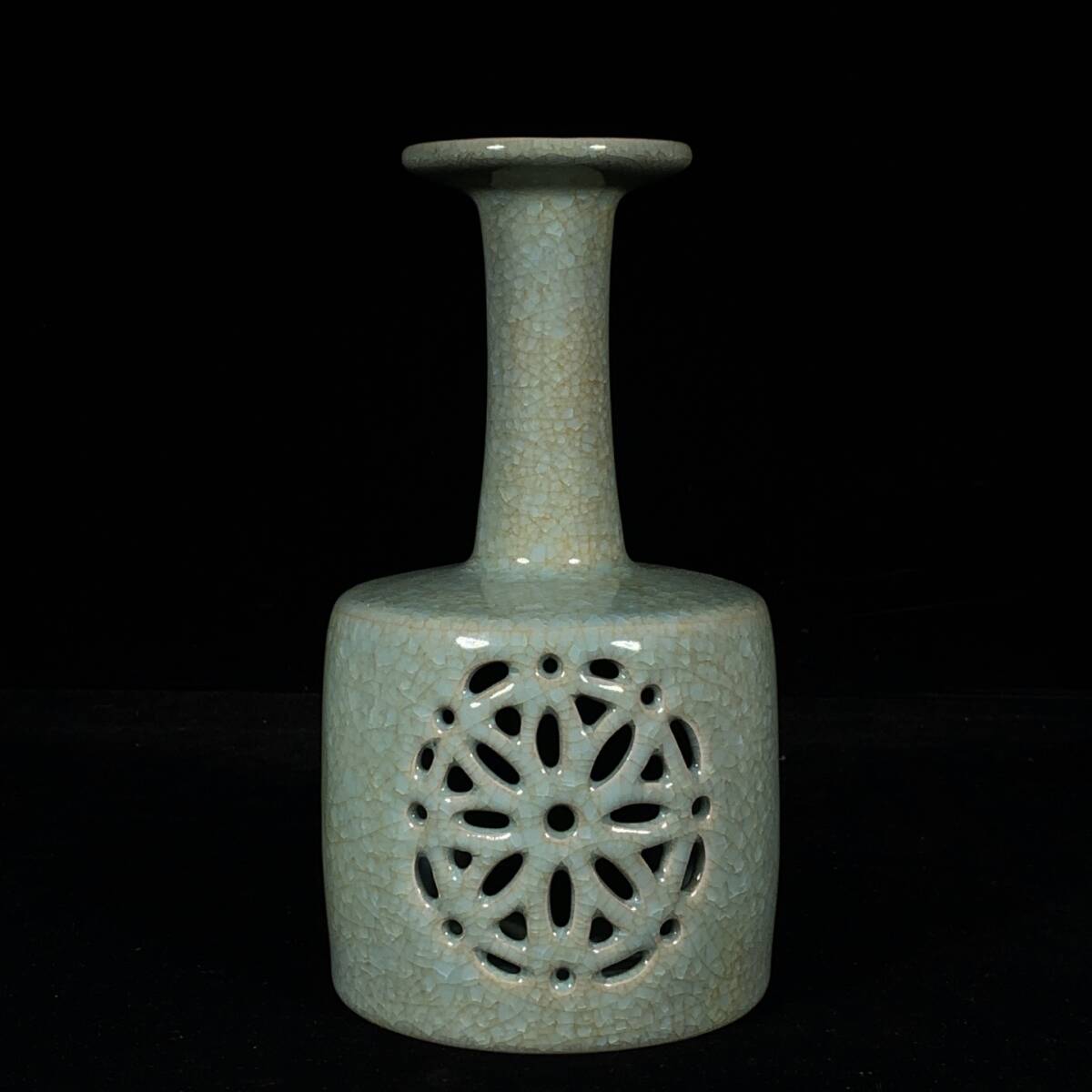 - 旧蔵 宋代 汝窯 鏤空 紙縋瓶 古陶瓷品 陶藝 古擺件 古置物 中国古玩 骨董品 時代物 稀少唐物