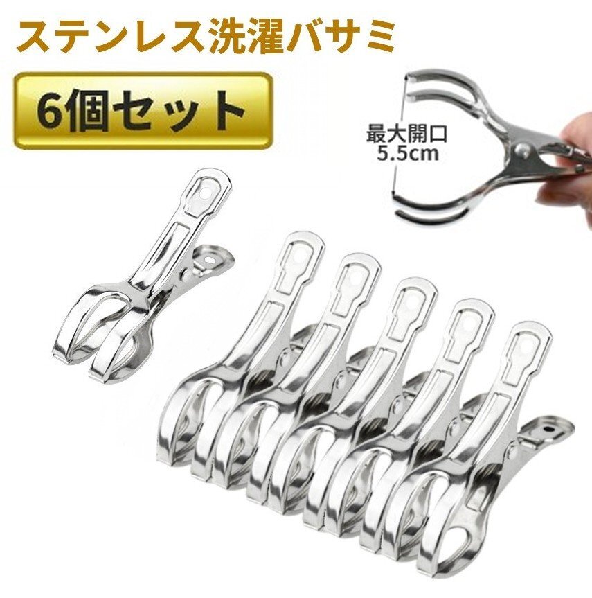 - 【vaps_2】ステンレス 洗濯ばさみ 8.5cm 6個セット 強力 大きい 防風 洗濯バサミ ハンガー固定 物干し ピンチ 送込
