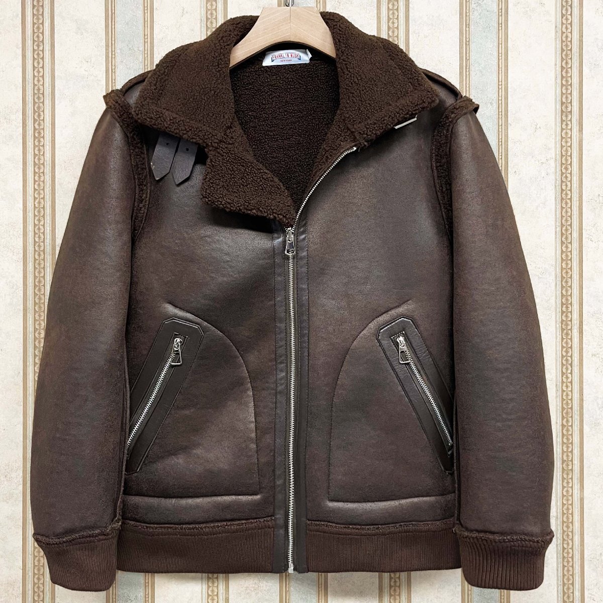 - 個性 定価15万 FRANKLIN MUSK・アメリカ・ニューヨーク発 レザージャケット 羊革 本革 裏起毛 リバーシブル ボアコート 革ジャン サイズ1