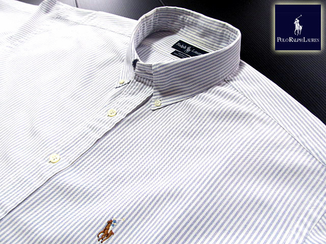 > ★500円スタート!ラルフローレン RALPH LAUREN ボタンダウンシャツ・オックスフォード 長袖 XLサイズ 希少品 クールストライプ ブルー
