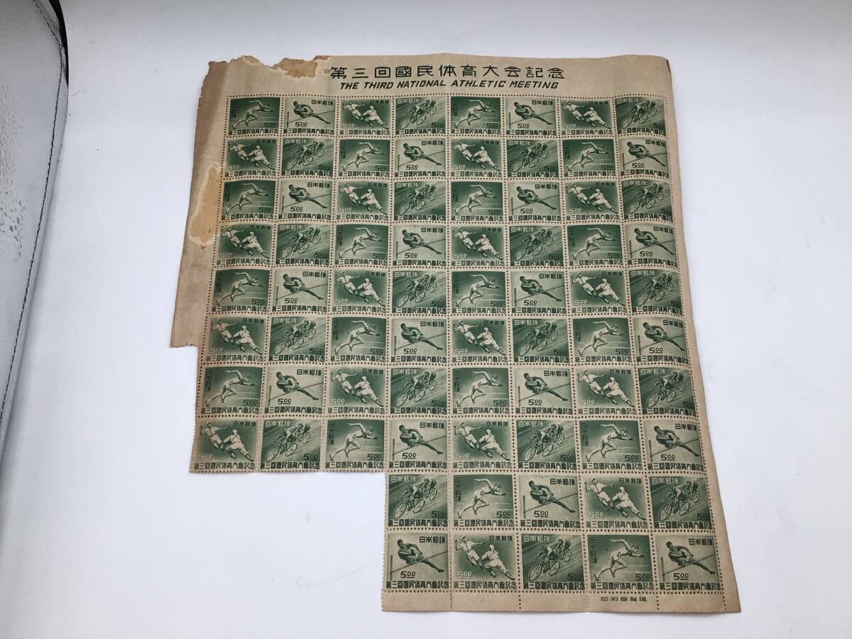 - M5539 第三回国民体育大会記念 國民体育大会 5円 74枚 記念切手シート シート崩れ