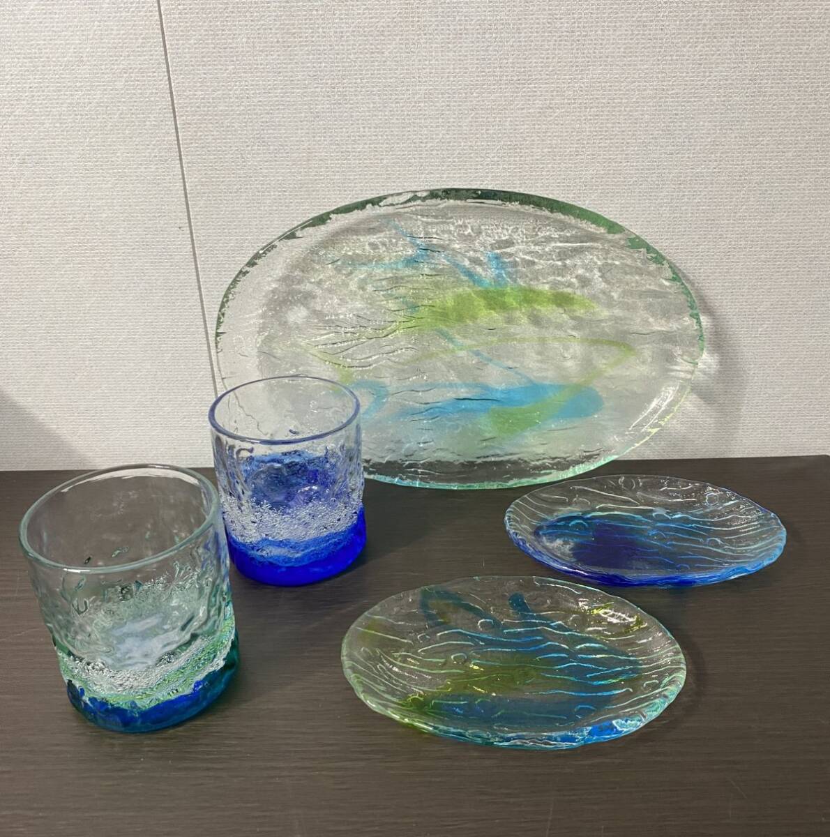 - OKI047-80 琉球ガラス グラス 小皿 皿 セット