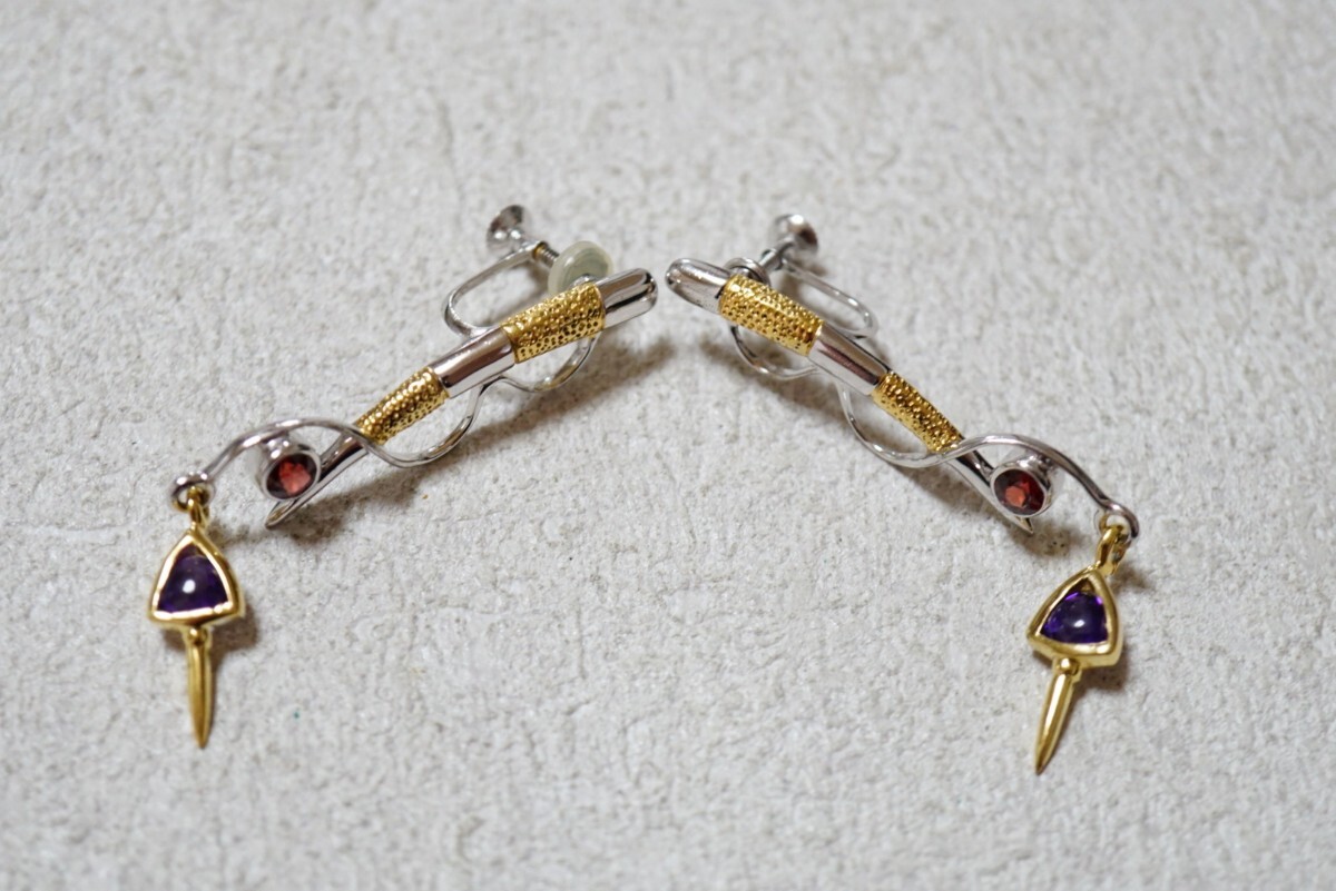 - 820 ガーネット アメジスト イヤリング 両耳揃い ヴィンテージ アクセサリー SILVER刻印 天然石 宝石 色石 カラーストーン 装飾品