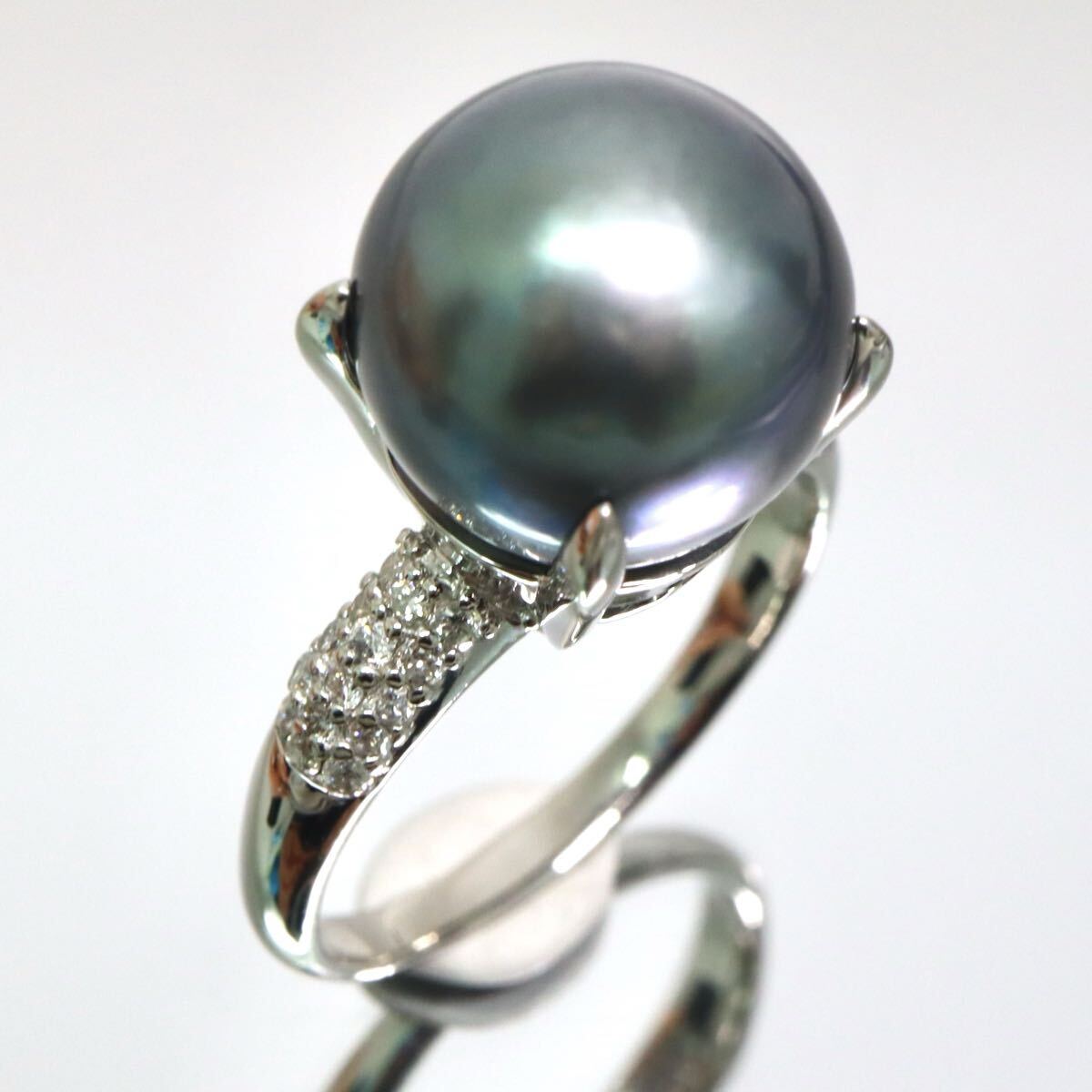 - 【売り切り】Pt900!!0.30ct!!約12.5mm珠■南洋黒蝶真珠/天然ダイヤモンドリング■D約10.6g 約21号 パール diamond 指輪 ring EG3/EG5 U919