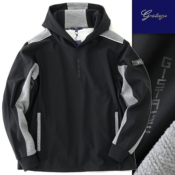 > 新品 ジーステージ コンビ ジャージー プルオーバー パーカー 48(L) 黒 灰 【6-30405_11_48】 秋冬 G-stage フード フーディー ゴルフ