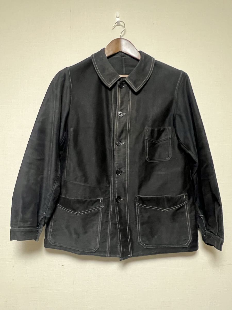 > モンサンミッシェル ブラック モールスキンジャケット 40年代 50年代 Vポケ フレンチビンテージ カバーオール ワークジャケット