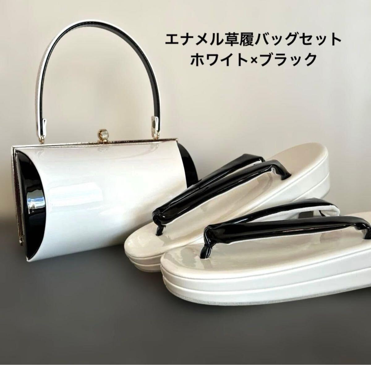 - エナメル草履バッグセット/ホワイト×ブラック 成人式